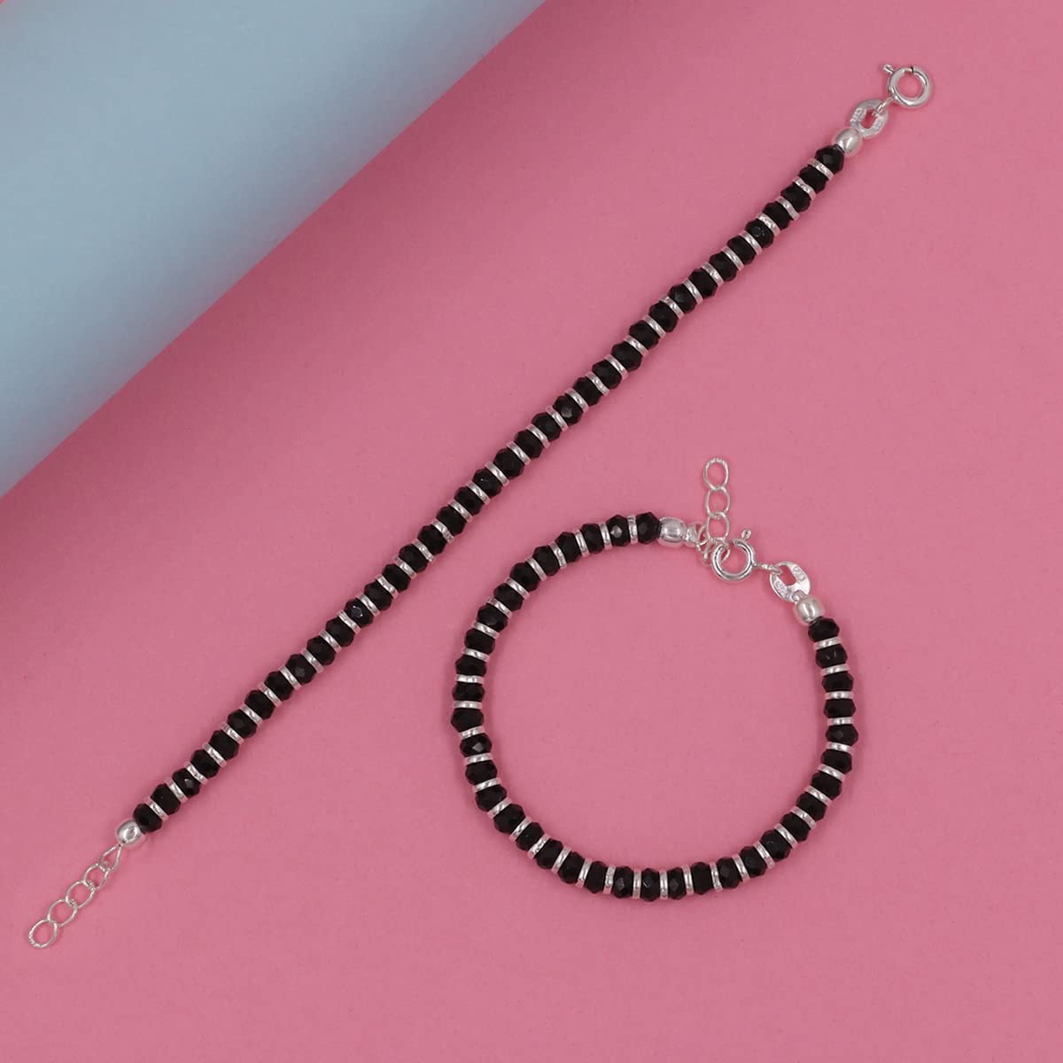 Black Bead Crystal Nazariya 925 Sterling Silver Bracelet for Boys and Girls – Set of 2