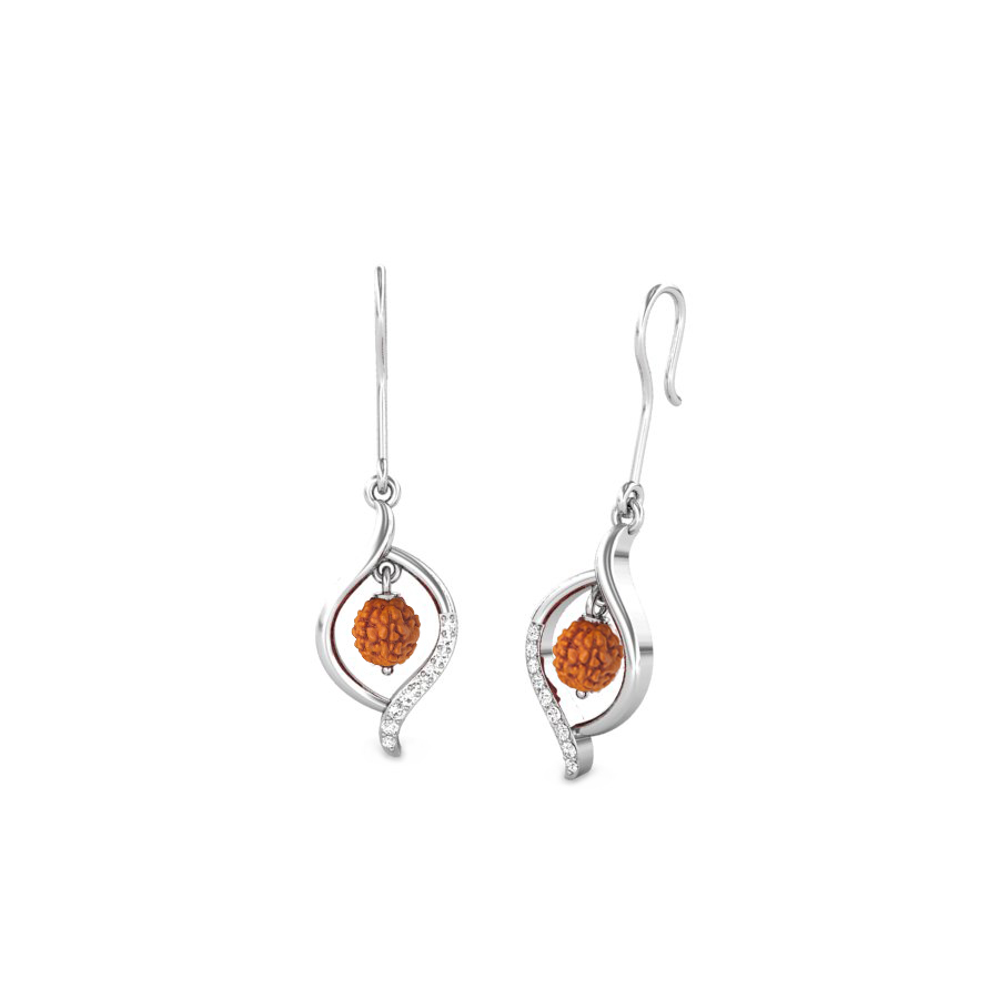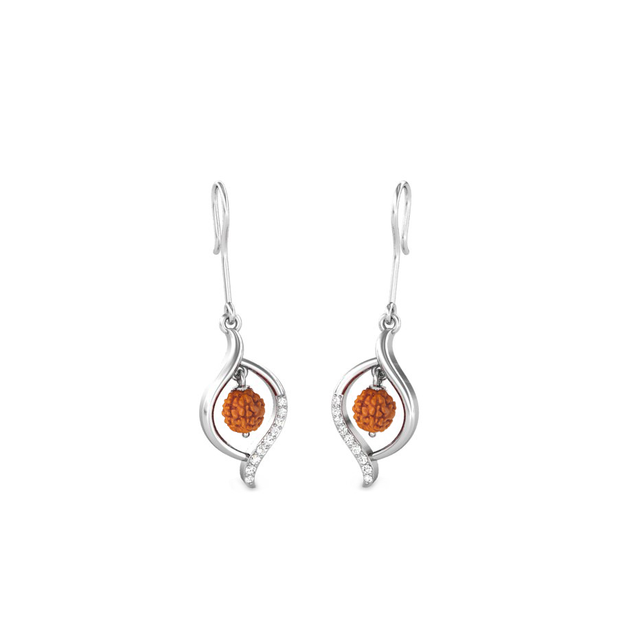 Feather Rudraksha With Swarovski Diamond 925 Sterling Silver Earring