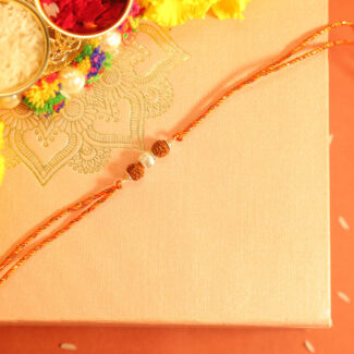 Embrace the spiritual significance of Rudraksha and the elegance of silver with our Rudraksha Silver Rakhi. This auspicious rakhi features a genuine Rudraksha bead strung on a sturdy silver cap and thread, accompanied by a intricate silver pendant. The Rudraksha bead is said to possess mystical powers, bringing peace, prosperity, and protection to the wearer.