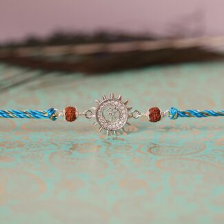 The Shivling Rudraksha Silver Rakhi is a powerful and spiritual rakhi design that combines the sacred Shivling symbol with the revered Rudraksha seed, crafted in silver. This rakhi embodies the spiritual significance of both symbols, making it a meaningful gift for brothers.