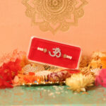 The Om Silver Rakhi is a beautiful and spiritual rakhi design that features the sacred Om symbol, crafted in silver. This rakhi combines the spiritual significance of Om with the elegance of silver craftsmanship.